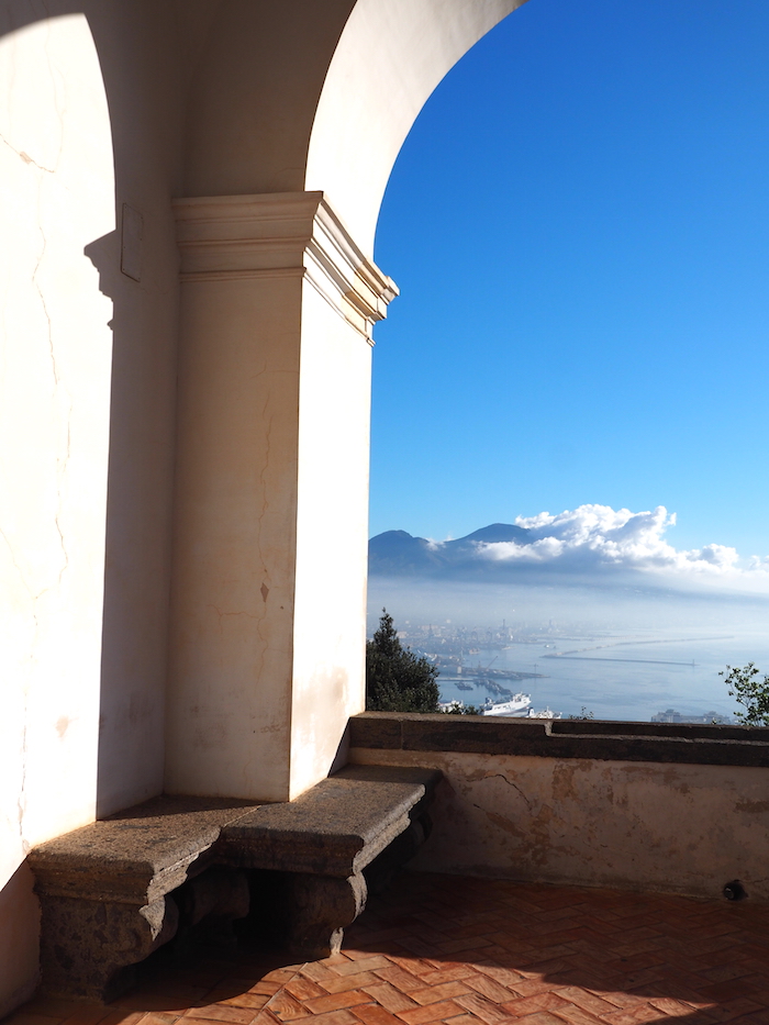 Bij het Certosa di San Martino klooster vind je een waanzinnig uitzicht, maar net iets hoger gelegen vind je het Castel Sant’Elmo op het hoogste punt van Napels. Het uitzicht vanaf dit kasteel is eigenlijk nog iets spectaculairder, omdat je niet alleen de hele stad en de Vesuvius vulkaan ziet maar ook het klooster van boven kunt bewonderen. Wij zijn hier helaas niet echt lang gebleven, terwijl hier nog genoeg te doen is. Naast het uitzicht vind je hier ook nog moderne kunst (kijk bijvoorbeeld eens naar de gekke klok met zwaarden als bewijzering) en de wandeltocht omhoog vanaf de parkeerplaats heeft ook iets bijzonders. Geen zin om te lopen naar dit hoogste puntje van Napels? Er gaat ook een kabeltrein naar boven!